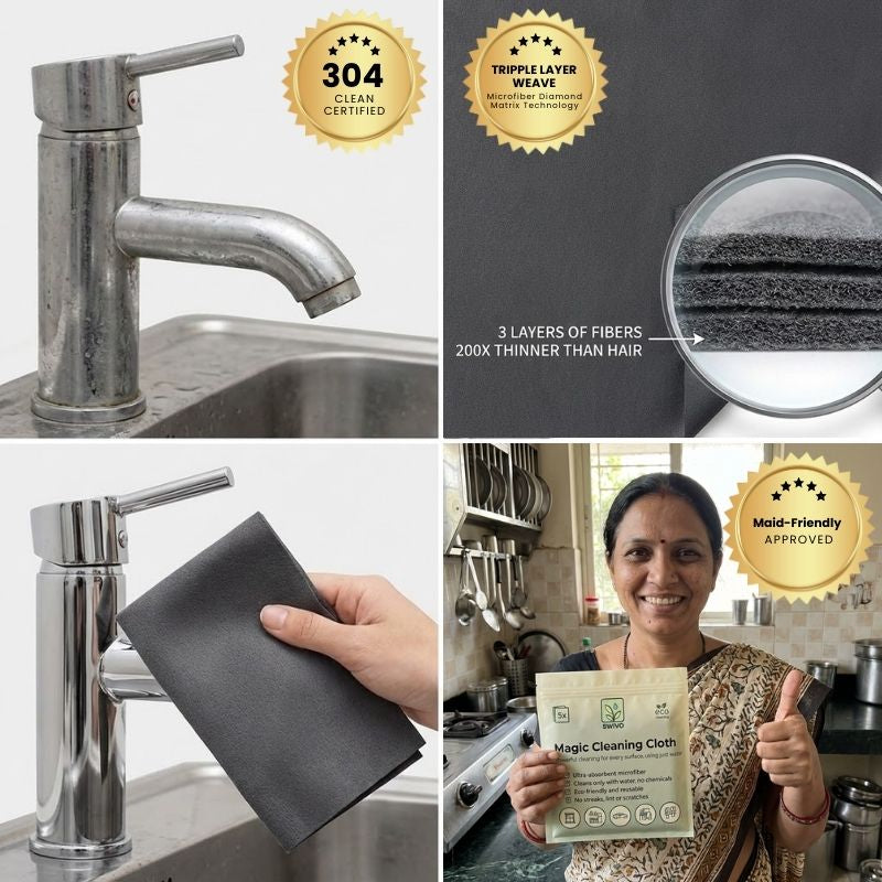 The Swivo Magic Cloth isn't magic, it's a marvel of engineering. Its secret lies in millions of ultra-fine microfibers, 200x thinner than a human hair. These fibers trap and lock away dirt, grease, and grime using only water, leaving behind nothing but a sparkling, spot-free surface.